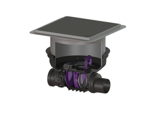 Βαλβίδα αντεπιστροφής StaufixControl, Type 2 με 2 κλαπέ και μοχλό ασφαλείας για εγκατάσταση εντός σκυροδέματος με 1 πλαστικό 1 ανοξείδωτο κλαπέ και μαύρο κάλυμμα, Φ 110 mm